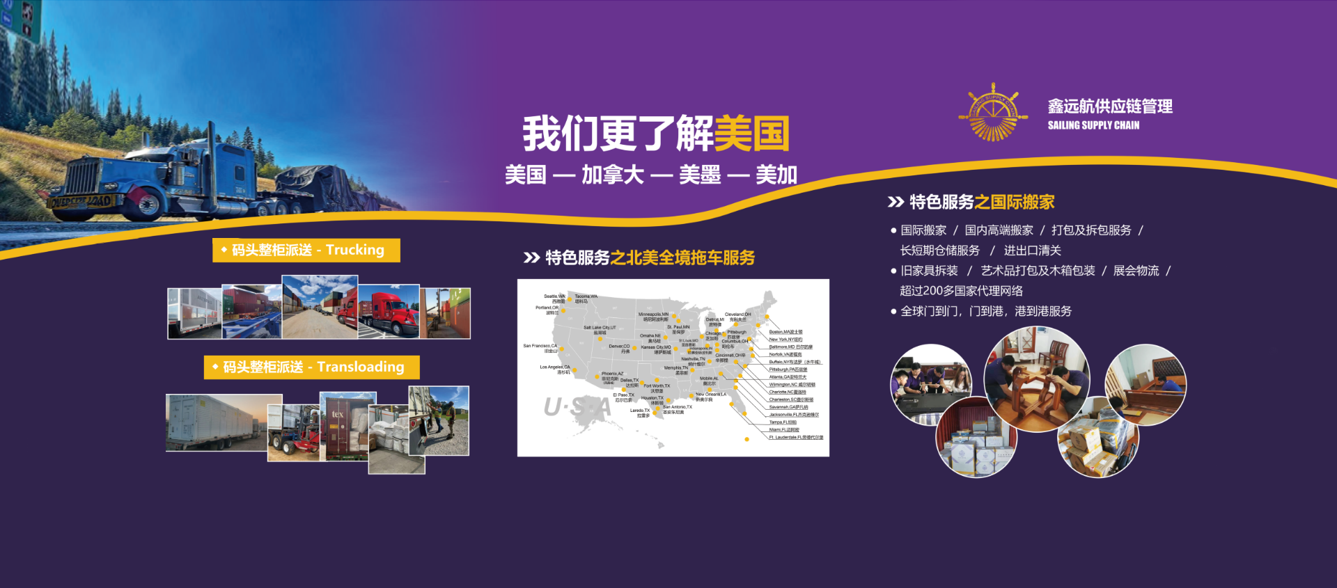 我們的服務(wù)涵蓋所有貿(mào)易條款CIF,DDP,DAP,DDU,FOB,EXW.與各大船東COSCO,HMM,YML . ZIM,MSC等建立共贏的長(zhǎng)期合作關(guān)系,在海運(yùn)、空運(yùn)、跨境電商物流,國(guó)外清關(guān)拖車(chē)、 海外倉(cāng)庫(kù)及各類(lèi)特種項(xiàng)目柜有多年操作經(jīng)驗(yàn),同時(shí)在全球200多個(gè)國(guó)家擁有 10000多名代理網(wǎng)絡(luò),為企業(yè)提供全方位的物流解決方案。近年來(lái),我們更是致力于開(kāi)拓電商,重點(diǎn)推出美國(guó),加拿大全區(qū)域拖車(chē)及美墨邊境拖車(chē),國(guó)際私人物品搬家及展會(huì)物流等特色服務(wù).......